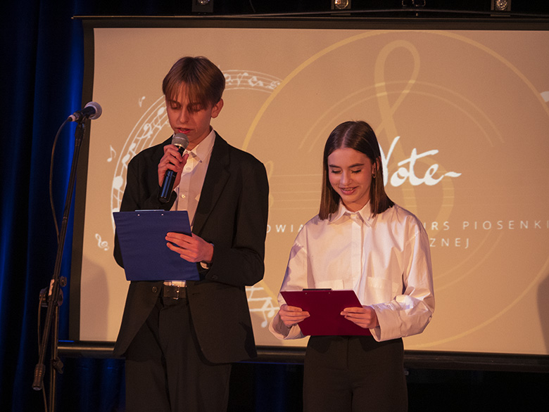 W piątek 19 maja w sali Samorządowego Ośrodka Kultury odbyła się kolejna edycja Powiatowego Konkursu Piosenki Obcojęzycznej "Note" 2023. Młodzi artyści rywalizowali w dwóch kategoriach wiekowych: klasy IV-VI i klasy VII-VIII. Wykonawców oceniali jurorzy reprezentujący szkoły uczestniczące w konkursie.