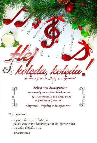 W niedzielę, 17 stycznia, o godzinie 15 rozpocznie się wspólne kolędowanie. Organizatorami uroczystości jest Stowarzyszenie Mój Szczepanów i sołtys Szczepanowa.