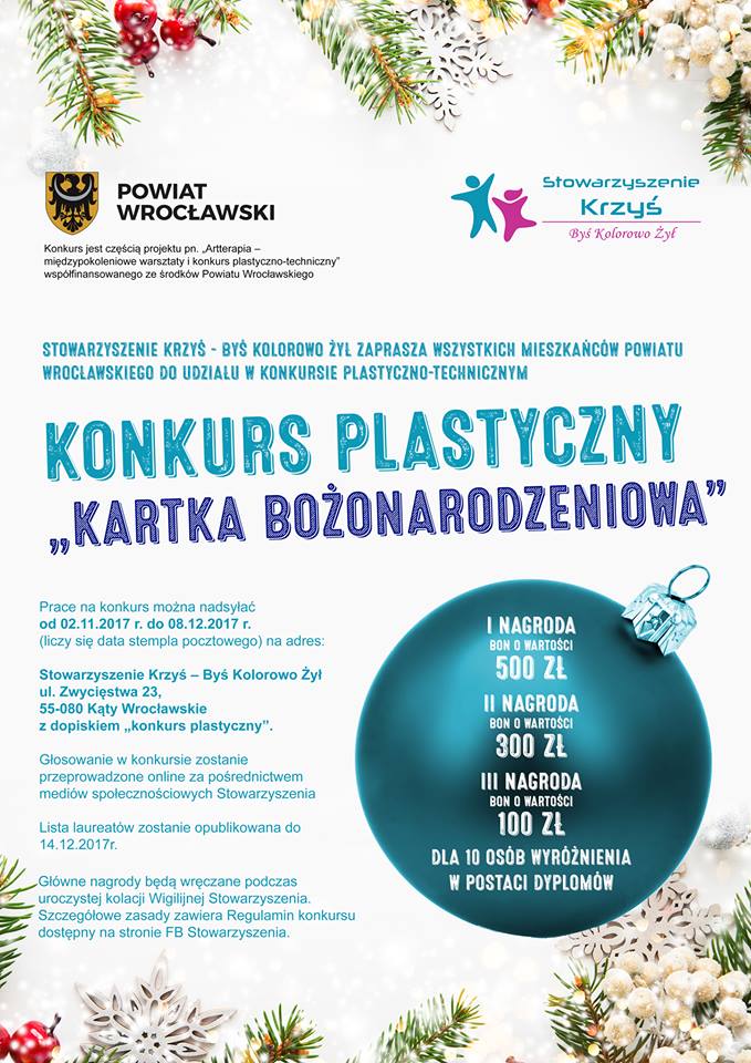 Stowarzyszenie 'Krzyś- Byś Kolorowo Żył' wspólnie z powiatem wrocławskim organizują konkurs plastyczny pod nazwą ,, Karta Bożonarodzeniowa’’
