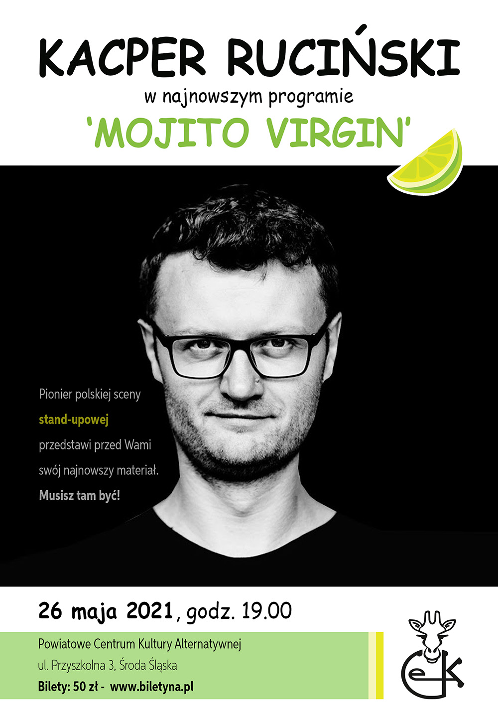 Powiatowe Centrum Kultury Alternatywnej w Środzie Śląskiej, poinformowało dziś o planowanym wydarzeniu. W Środzie Śląskiej ze swoim najnowszym programem pojawi się Kacper Ruciński - jeden z najbardziej znanaych stand uperów w Polsce.