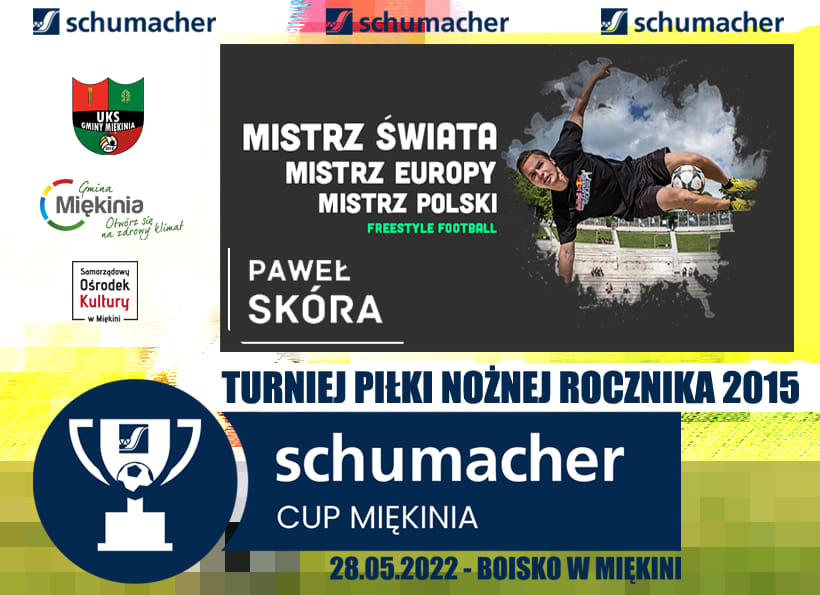 Organizatorem wydarzenia jest Akademia Piłkarska UKS Gminy Miękinia oraz firma Schumacher Packaging Polska. Tym razem na czterech boiskach z bandami w formule 3 na 3 zmierzą się młodzi zawodnicy z rocznika 2015. - Jesteśmy pewni, że będziemy mogli oglądać masę świetnych dryblingów, akcji i bramek! A co najważniejsze moc rewelacyjnej zabawy! Małe gry 3 na 3 to świetna, nowoczesna forma turniejów dla najmłodszych zawodników - podsumowują organizatorzy.