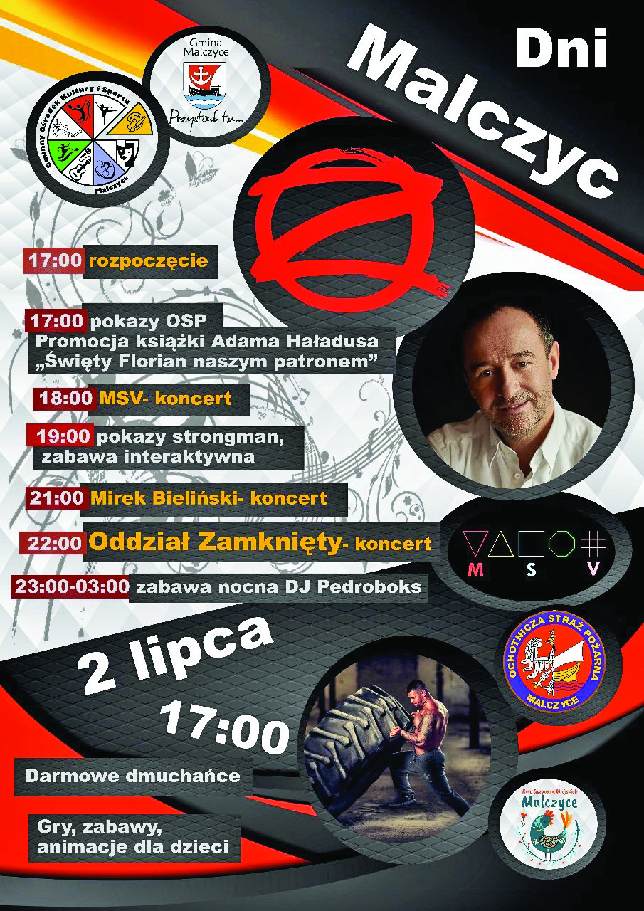 2 lipca na stadionie przy ulicy Mickiewicza odbędą się Dni Malczyc. Start imprezy o godzinie 17:00. W programie m.in. pokazy strażackie, zawody strongman, koncerty i nocna zabawa z DJ-em.