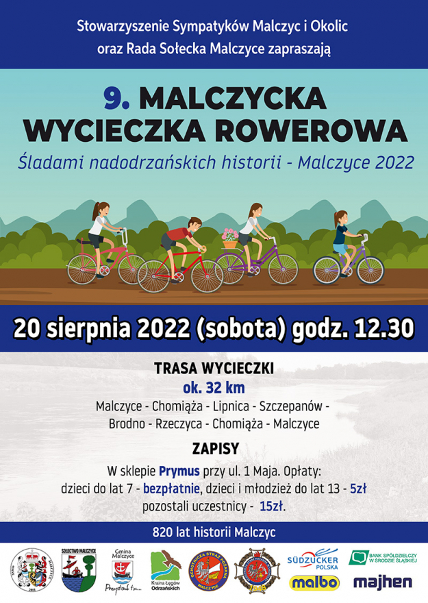 Trasa wycieczki rozpoczyna się na boisku sportowym w Malczycach, przebiega przez takie miejscowości jak Chomiąża, Lipnica, Szczepanów, Brodno i Rzeczyca. Wycieczka organizowana przez Stowarzyszenie Sympatyków Malczyc i Okolic oraz Sołectwo Malczyce odbędzie się już po raz dziewiąty. W tym roku przyświecają jej obchody 820 lat historii Malczyc.