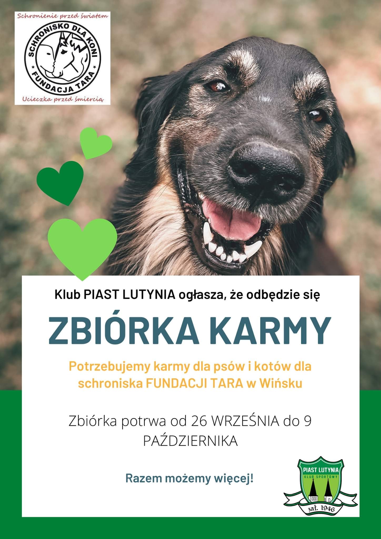 Występujący we wrocławskiej A klasie Piast Lutynia ogłosił zbiórkę karmy dla psów i kotów przebywających w schronisku Fundacji Tara w Wińsku. Zbiórka trwa do 9 października.