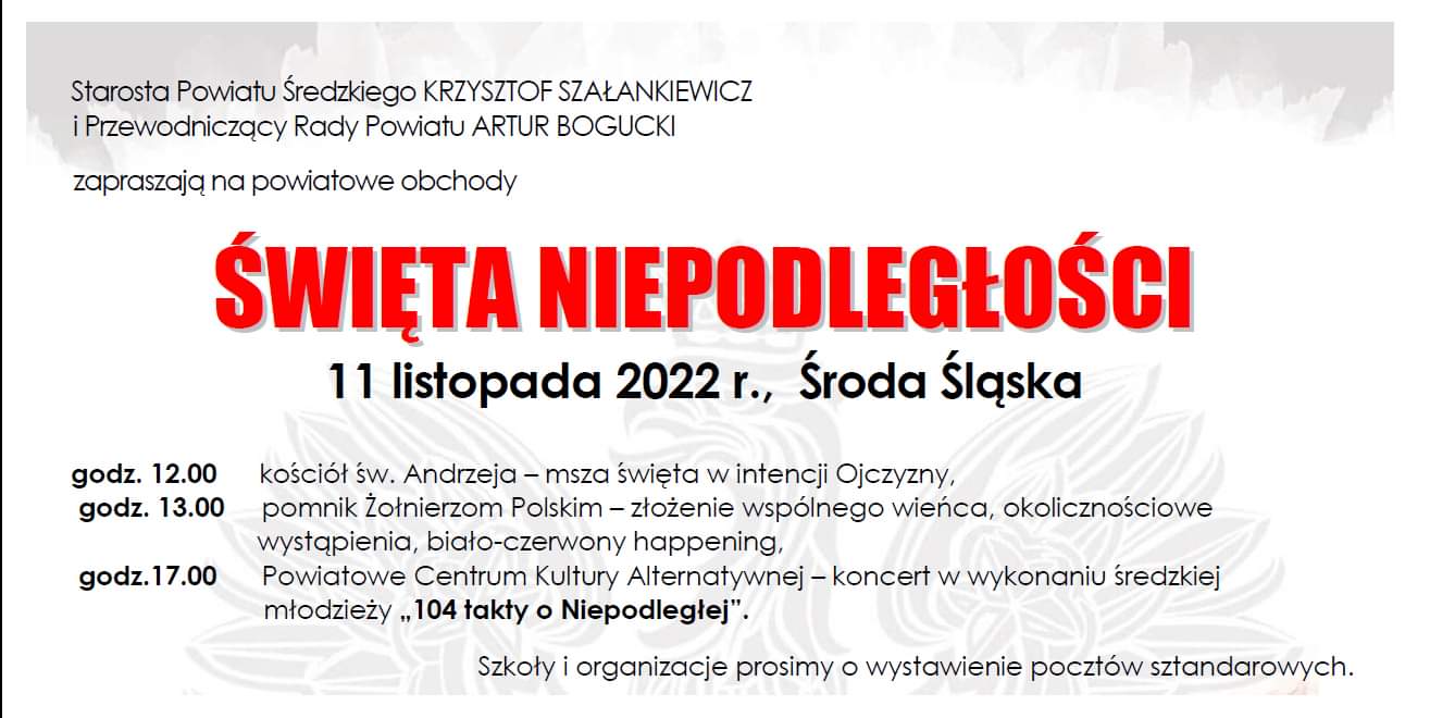 11 listopada tradycyjnie przypada Narodowe Święto Niepodległości, które obchodzone jest corocznie dla upamiętnienia odzyskania niepodległości przez Polskę po 123 latach zaborów. Przedstawiamy plan obchodów na terenie powiatu średzkiego.