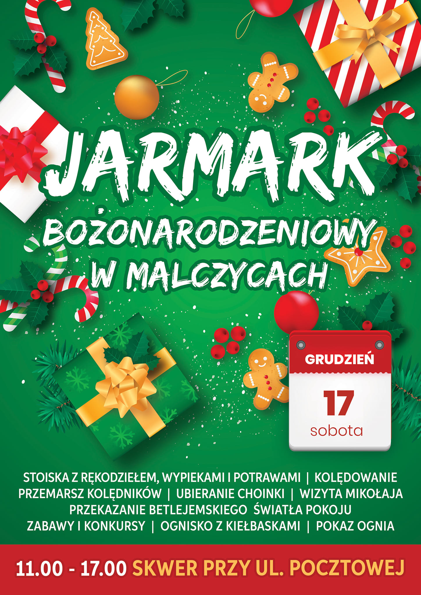 Jutro o godzinie 11.00 na skwerze przy ul. Pocztowej rozpocznie się Jarmark Bożonarodzeniowy w Malczycach. W planie m.in. przemarsz kolędników, wizyta Mikołaja, przekazanie Betlejemskiego Światła Pokoju czy pokaz ognia.