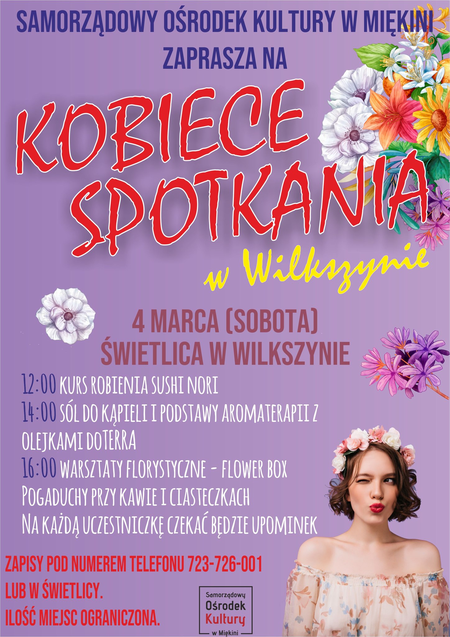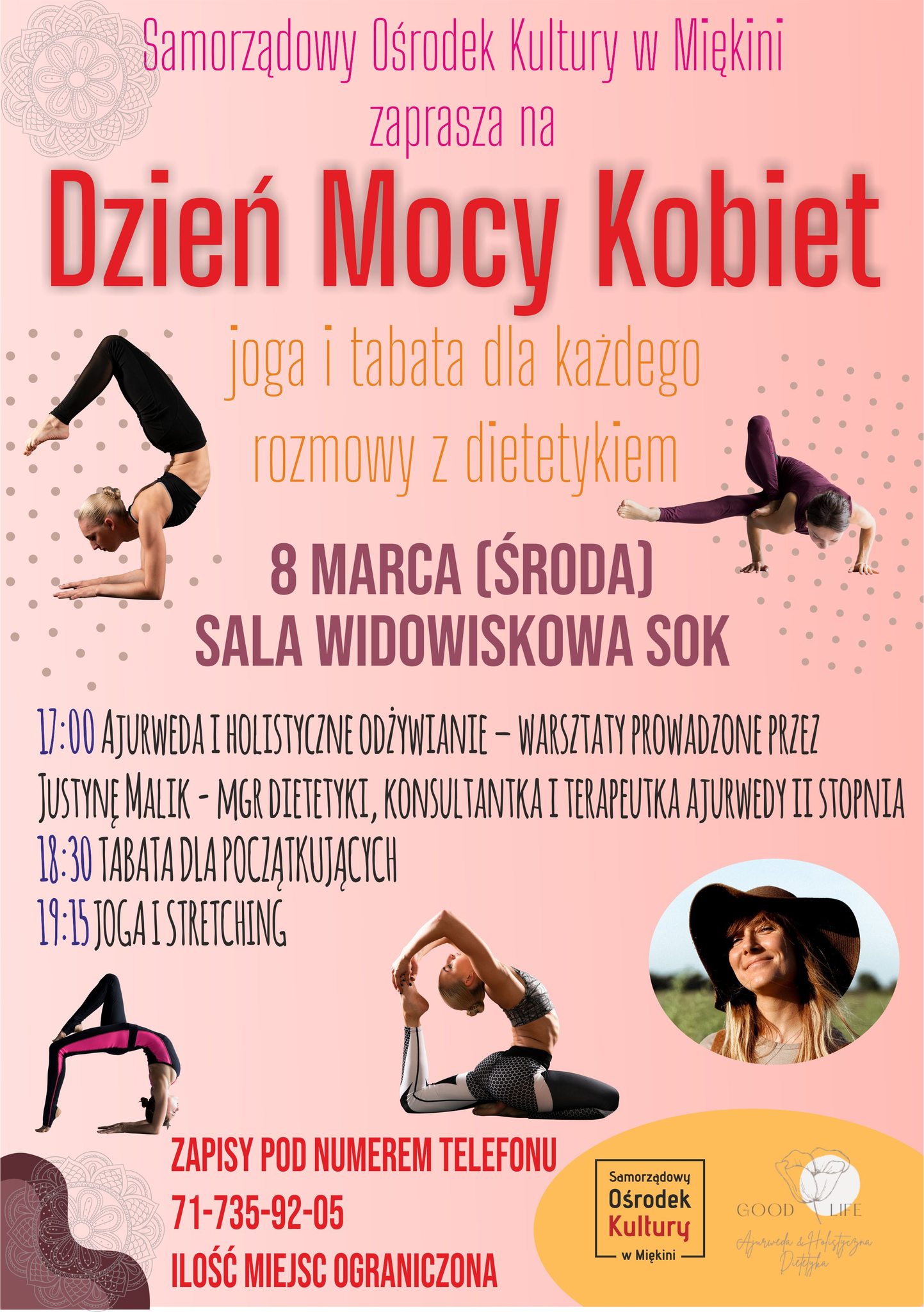 W gminie Miękinia Dzień Kobiet zacznie sie już 4 marca. Samorządowy Ośrodek Kultury stanął na wysokości zadania i przygotował dla mieszkanek gminy szereg propozycji. Każda kobieta znajdzie coś dla siebie. Poniżej przedstawiamy szczegóły wszystkich wydarzeń.
