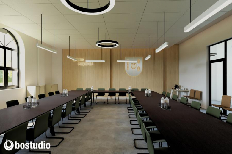 Ponad 200-metrowa była sala posiedzeń w Urzędzie Miejskim w Miękini zostanie gruntownie przebudowana i zyska nowe funkcje. Wydzielona zostanie nowa sala ślubów na potrzeby Urzędu Stanu Cywilnego, a także sala sesyjna Rady Miejskiej, która po remoncie przeniesie się z obradami do nowego pomieszczenia. Poza dwoma funkcjonalnymi salami zaplanowano także pomieszczenia magazynowe i ciągi komunikacyjne.