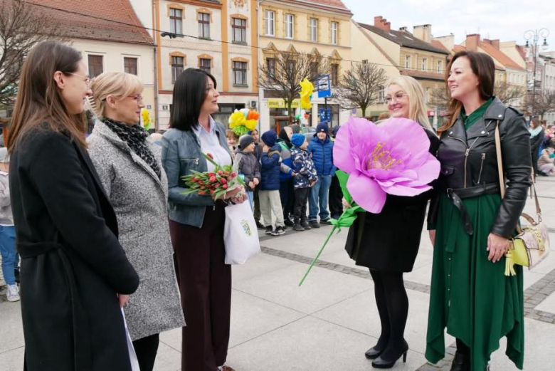 Wiosnę na średzkim rynku powitały przedszkolaki z przedszkoli publicznych w Środzie Śląskiej oraz uczniowie Szkoły Podstawowej nr 1 w Środzie Śląskiej. Było wesoło i kolorowo, a wszyscy uczestnicy otrzymali od burmistrz słodkie upominki.