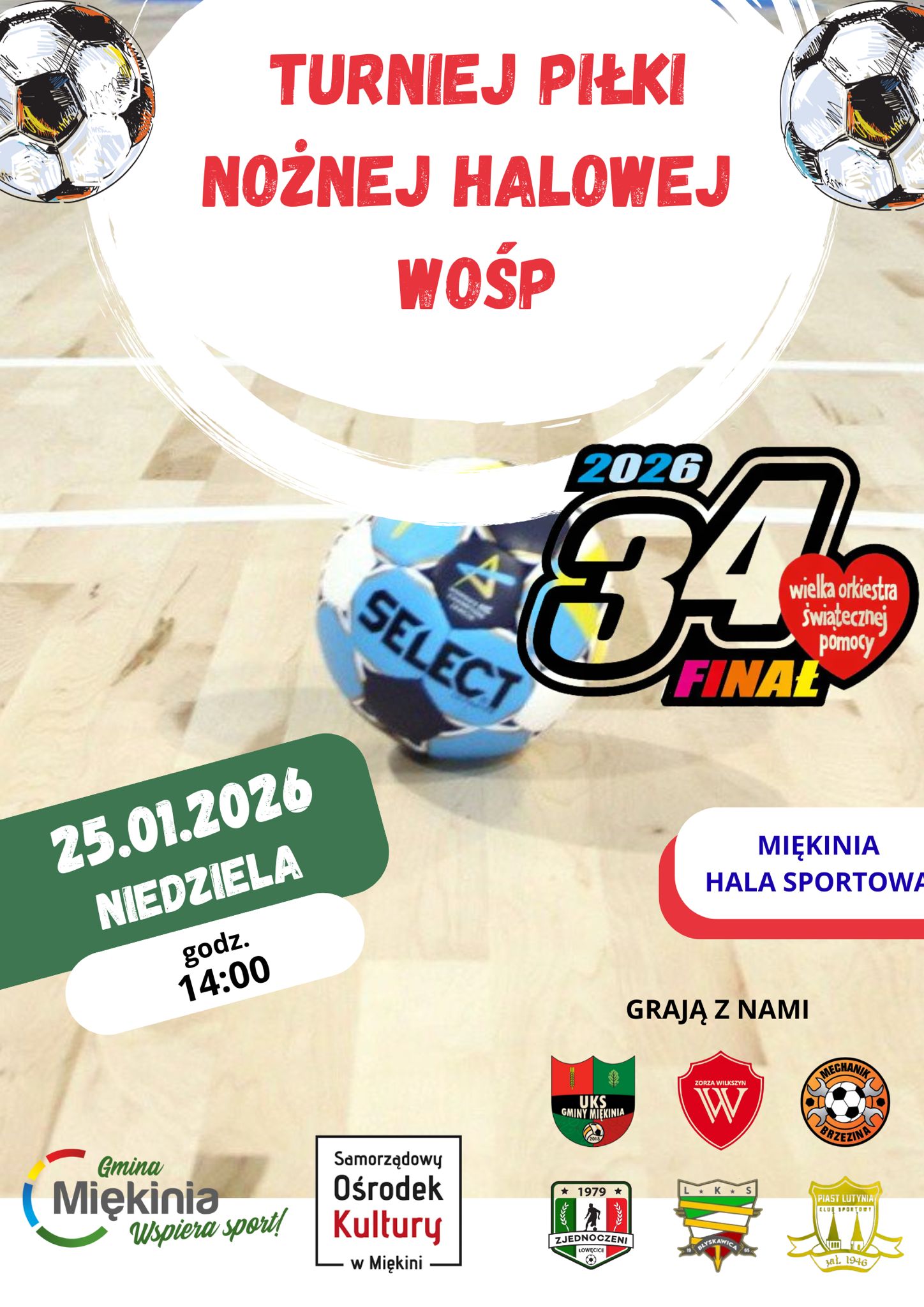 Centralnym punktem finału będzie Turniej Halowej Piłki Nożnej WOŚP, który rozpocznie się o godz. 14:00 w hali sportowej w Miękinia. Na parkiecie zobaczymy lokalne drużyny, które rywalizować będą w duchu fair play, pokazując, że sport i pomaganie idą w parze.