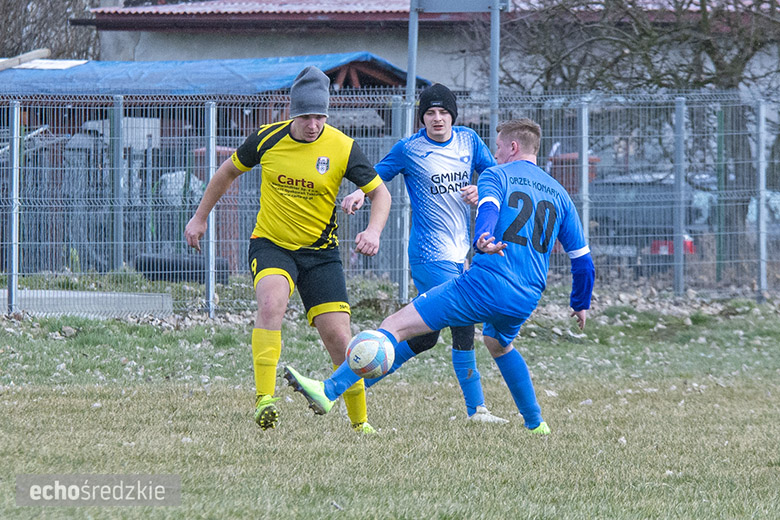 W niedzielę 14 marca w Ujeździe Gónym rozegrano B-klasowe derby gminy Udanin. Miejscowa Gama podejmowała Orła Konary. Wynik ładnym strzałem z rzutu wolnego otworzył Rafał Wolski, wyprowadzając gospodarzy na prowadzenie. Później gole strzelali już tylko goście. Dwa trafienia zanotował Daniel Bojczuk, a jedną zapisano na konto Jakuba Dobiesa. Wynik końcowy 1:3 na korzyść zespołu z Konar.