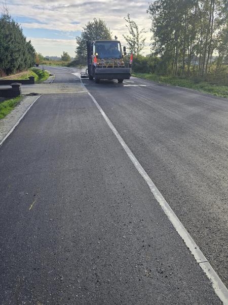 Wykonawca, firma Berger Bau, kładzie już ostatnie warstwy nawierzchni bitumicznej, a po pomyślnych odbiorach technicznych droga będzie wkrótce gotowa do użytku. Już niebawem mieszkańcy będą mogli cieszyć się nową, wygodną trasą!