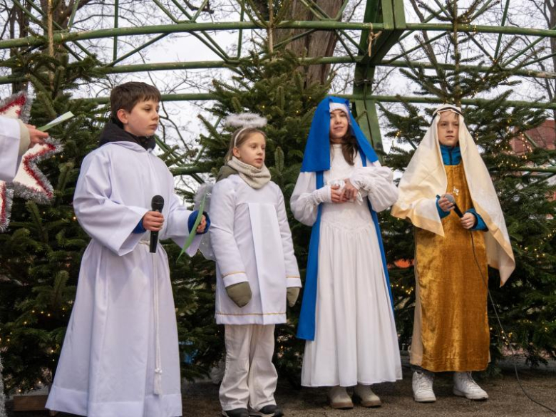 Po zakończeniu orszaku wszyscy uczestnicy zostali zaproszeni do parku w Lutyni, gdzie odbyło się przedstawienie przygotowane przez uczniów miejscowej szkoły. Młodzi artyści wcielili się w postacie znane z biblijnej historii o Trzech Królach, prezentując wzruszającą scenkę pełną emocji i zaangażowania. Występ uczniów został nagrodzony gromkimi brawami oraz słowami uznania od publiczności.