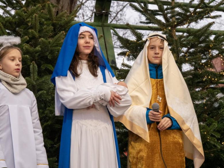 Po zakończeniu orszaku wszyscy uczestnicy zostali zaproszeni do parku w Lutyni, gdzie odbyło się przedstawienie przygotowane przez uczniów miejscowej szkoły. Młodzi artyści wcielili się w postacie znane z biblijnej historii o Trzech Królach, prezentując wzruszającą scenkę pełną emocji i zaangażowania. Występ uczniów został nagrodzony gromkimi brawami oraz słowami uznania od publiczności.