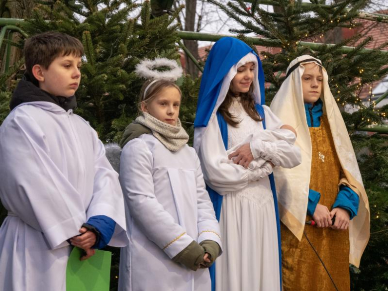 Po zakończeniu orszaku wszyscy uczestnicy zostali zaproszeni do parku w Lutyni, gdzie odbyło się przedstawienie przygotowane przez uczniów miejscowej szkoły. Młodzi artyści wcielili się w postacie znane z biblijnej historii o Trzech Królach, prezentując wzruszającą scenkę pełną emocji i zaangażowania. Występ uczniów został nagrodzony gromkimi brawami oraz słowami uznania od publiczności.