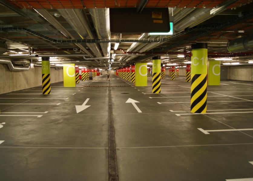 Podziemny parking wybudowany pod placem dworcowym posiada 217 miejsc parkingowych.