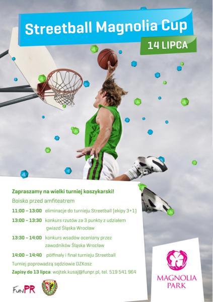 W najbliższą sobotę, 14 lipca, na placu Piazza przed Magnolią we Wrocławiu rozegrany zostanie Streetball Magnolia Cup. Nie zabraknie pokazów freestyle’u oraz konkursu wsadów. Gośćmi specjalnymi turnieju będą koszykarze Śląska Wrocław