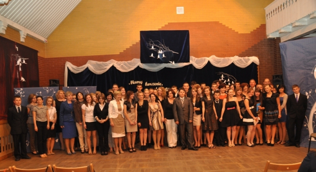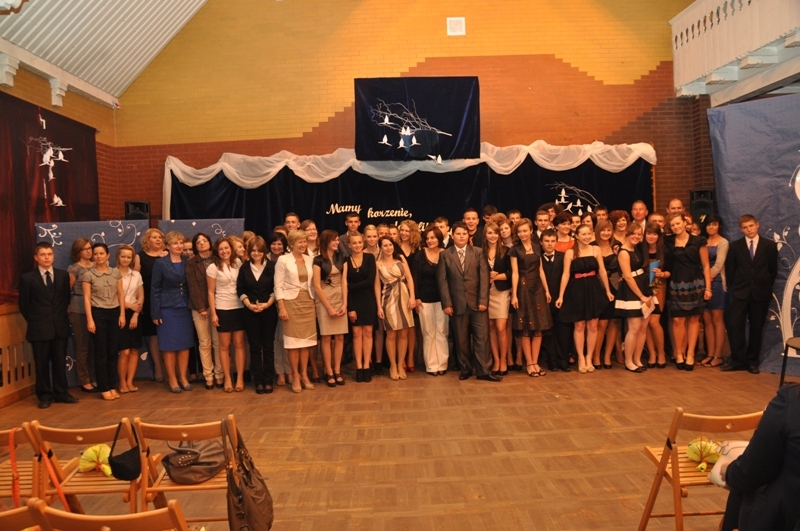 Trzecioklasiści, zgodnie z kilkuletnią tradycją zatańczyli poloneza na uroczystości 27 czerwca. Obecni na uroczystości przedstawiciele władz samorządowych z p. wójtem Ryszardem Skułą i przewodnicząca Rady Gminy p. Mariolą Kądzielą, zaproszeni goście i rodzice mogli bawić się podczas przyznawania uczniom i nauczycielom „Oskarów” – w wersji humorystycznej oraz obejrzeć scenkę, o perypetiach Zeusa i bogów z Olimpu związanych z informacjami o życiu w „gimnazjumie”. Program artystyczny przygotowali uczniowie pod kierunkiem p. Renaty Burdzy. Ważnym elementem uroczystości było wręczenie nagród, uczniom, którzy uzyskali wyniki kwalifikujące do świadectwa z wyróżnieniem oraz za szczególne osiągnięcia w konkursach, (np.: I miejsce w Powiatowym Konkursie Języka Niemieckiego – E. Fedyczkowska, II miejsce w Powiatowym Konkursie Matematycznym – M. Krygier), zawodach sportowych (najlepsi sportowcy – Natalia Zielińska i Radek Kmiecik ), działalności na rzecz szkoły i środowiska oraz za 100% frekwencję.