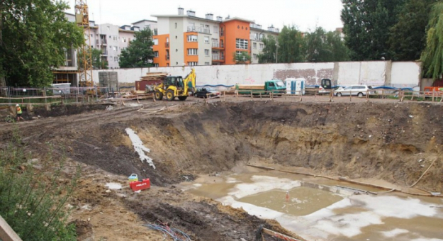 Między szkołą teatralną (PWST), a biurowcem przy ulicy Powstańców Śląskich jest ogromna dziura. W tym miejscu powstanie budynek wrocławskiej Izby Skarbowej. Budowa zakończy się za trzy lata.