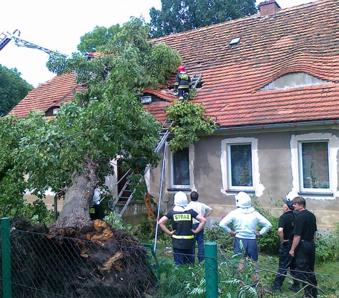 W akcji ratowniczej polegającej przede wszystkim na usunięciu wyrwanego drzewa wzięły udział jednostki straży pożarnej PSP ze Środy Śląskiej oraz OSP Rusko i OSP Wilczków.