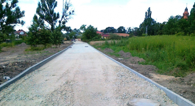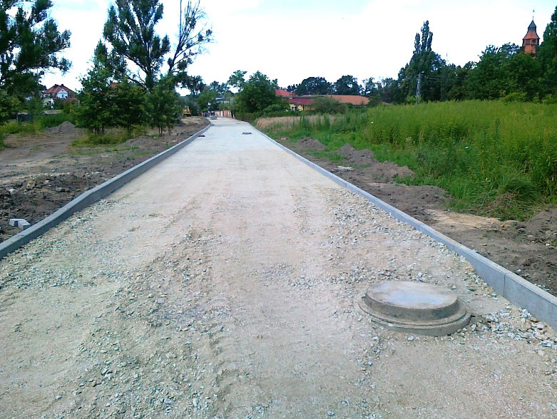 Zakres prac obejmuje min: wykonanie kanalizacji deszczowej oraz sanitarnej z wpięciami do istniejących ciągów, wyprowadzenie wpięć wodno - kanalizacyjnych do nowych działek budowlanych znajdujących się w sąsiedztwie ulicy oraz wykonanie nowej nawierzchni z kostki betonowej. Zakończono już prace związane z ułożeniem rurociągów. Aktualnie trwają prace związane z przygotowaniem podbudowy drogi. Tozpoczęto też układanie kostki betonowej, której do wyłożenia jest ok. 4100 m 2.