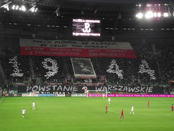„Niech mówią, że klęska, że czcić nie należy, Śląsk Wrocław jest dumny z powstańczych żołnierzy” – tak brzmiało główne hasło oprawy, jaką przygotowali podczas meczu z Helsingborgs IF kibice wrocławskiej drużyny. Tym samym fani WKS-u z okazji 68. rocznicy Powstania Warszawskiego oddali hołd jego uczestnikom.