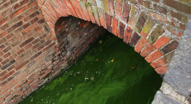 Woda w fosie zrobiła się zielona. Z wyglądu przypomina masę perłową z tworzywa sztucznego. Czy zmiany są groźne dla ryb i organizmów żywych?