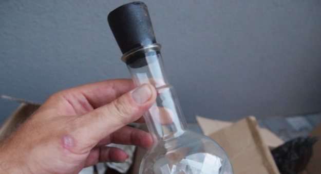 W kartonowym pudle obok śmietnika leży naczynie m.in. z alkoholem amylowym – silnym związkiem organicznym, który służy do produkcji rozpuszczalników. Na butelkach są zdarte etykietki i nie wiadomo, jaka substancja znajduje się w środku. W drugim pudle znaleźliśmy potłuczone próbówki, zlewki i inny sprzęt laboratoryjny m.in. pochłaniacze szkodliwych oparów. W wiacie śmietnikowej leżą dokumenty z nazwiskami studentów oraz rachunki z gabinetów medycznych.