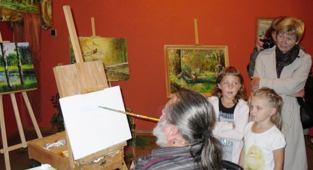 W trakcie uroczystości Jerzy Omelczuk pokazał jak powstaje dzieło. Namalowany pejzaż nadodrzański przekazał do domu kultury.