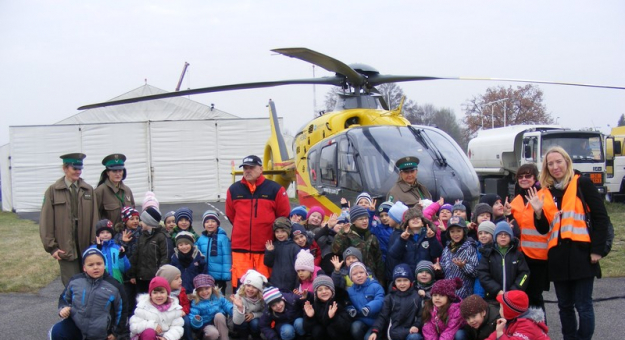 Uczestnicy wycieczki swoje zwiedzanie rozpoczęli od wizyty na starym terminalu, gdzie przeszli kontrolę bezpieczeństwa, z płyty lotniska obejrzeli start samolotu. Następnie udali się do Lotniczego Pogotowia Ratunkowego, gdzie pilot śmigłowca opowiedział im o swojej pracy ratującej ludzkie życie. Przedszkolaki zachwycone były również pokazem samochodu do gaszenia pożaru Barracuda z Lotniskowej Straży Pożarnej. Kolejną atrakcję przygotowali funkcjonariusze Placówki Straży Granicznej we Wrocławiu-Strachowicach, którzy przygotowali pokaz umiejętności psa służbowego Straży Granicznej oraz prezentację sprzętu, w tym robota pirotechnicznego będącego na wyposażeniu placówki.