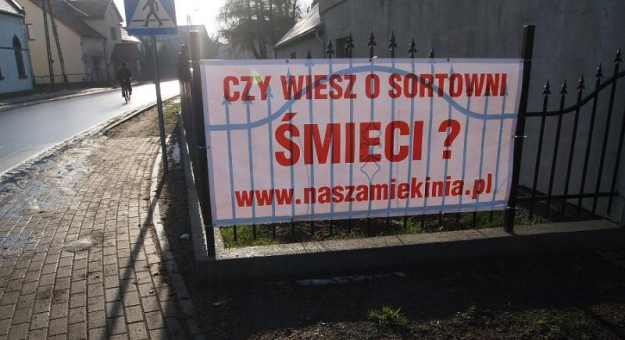 Mieszkańcy gminy Miękinia obawiają się budowy sortowni i kompostowni śmieci. Powołali stowarzyszenie, które rozwiesiło transparenty „Czy wiesz o sortowni śmieci?”.