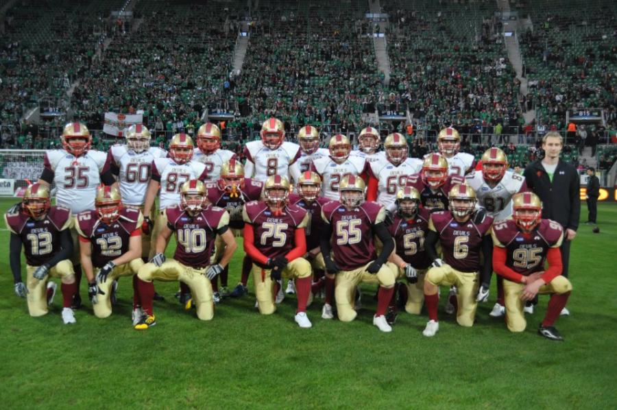 Polska Liga Futbolu Amerykańskiego ogłosiła właśnie listę nazwisk 30 zawodników, którzy powołani zostali, na pierwszy, historyczny mecz reprezentacji Polski w tej dyscyplinie. Mecz pomiędzy Polską a Szwecją rozegrany zostanie 2 lutego 2013, w łódzkiej Atlas Arenie. Szkoleniowcy zdecydowali się powołać, aż 6 zawodników Devils Wrocław.
