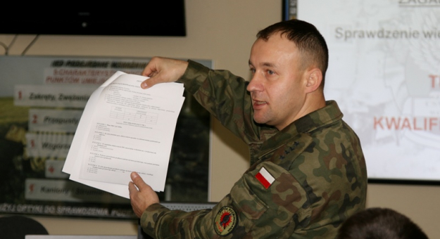 - Jest to pierwszy z trzech kursów, w których weźmiecie udział… – zwrócił się do słuchaczy podpułkownik Piotr TOMKÓW, Szef Zespołu Rozminowania, który rozpoczął pierwszą edycję kursu EOR – W pierwszej kolejności nauczycie się rozpoznawać przedmioty wybuchowe i niebezpieczne…, potem nauczycie się niszczyć amunicję konwencjonalną i proste improwizowane urządzenia wybuchowe, aby na końcu uczyć się niszczyć bardziej wyrafinowane IED… Ten kurs jest kursem niezwykle intensywnym, który ma z Was zrobić specjalistów, którzy będą w stanie rozpoznawać pomieszczenia, pojazdy, teren. To Wy macie być ludźmi, którzy faktycznie w zespołach EOD spełniają główną rolę – rolę tych, którzy wchodzą do pomieszczenia, znajdują przedmioty wybuchowe i niebezpieczne, a potem je neutralizują.