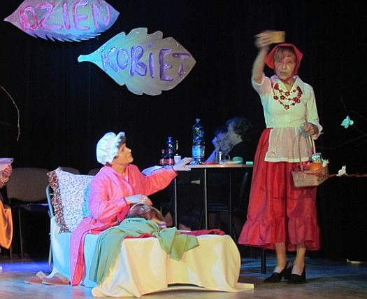 Podczas Dnia Kobiet w Miękini grupa teatralna działająca przy domu kultury przygotowała na uroczystość przedstawienie „Czerwony kapturek, czyli mierz babciu siły na rozmiary”.