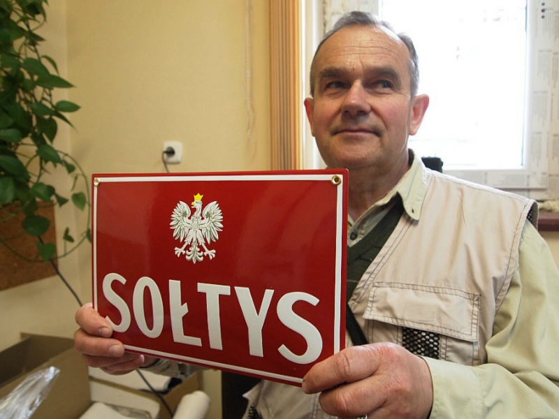 Tabliczki zgodnie z wymogami mają godło z orłem w koronie. Wcześniejsze miały tylko napis sołtys.