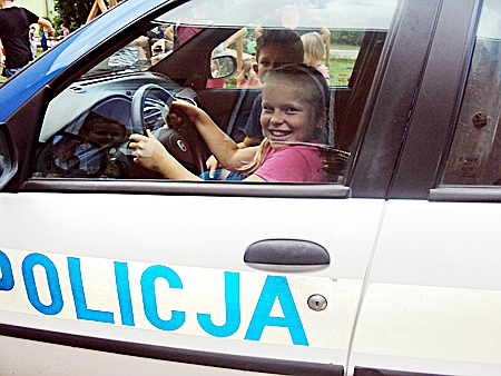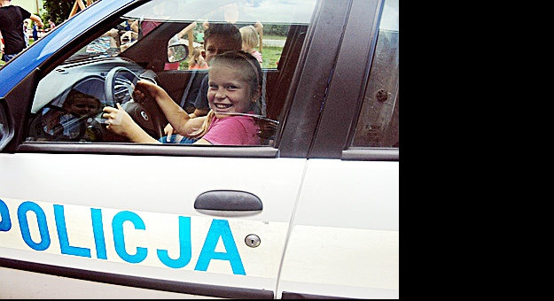 Koloniści dostali książeczki edukacyjne i mogli posiedzieć w policyjnym radiowozie.