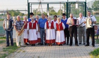 Boisko sportowe wybudowano trzy lata temu. Montaż lamp wyniósł 35 tys. zł. Podczas odbioru wójt Jan Marian Grzegorczyn spotkał się z zespołem ludowym Radośni.
