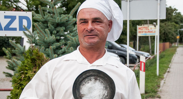 Jego imię i nazwisko niewielu osobom jest znane, ale gdy ktoś powie - kucharz z patelnią na ósemce - od razu przed oczami widzimy jego twarz, strój i Gościniec pod Furą, w którym pracuje.