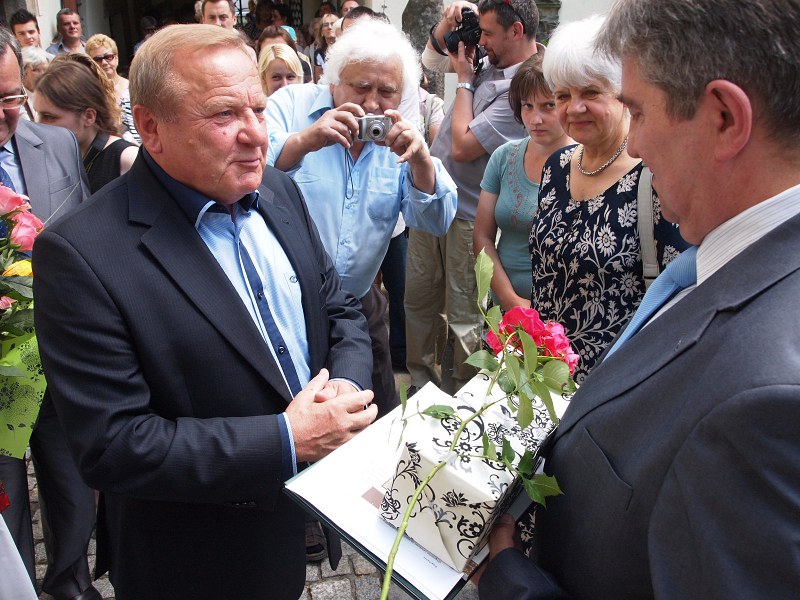 Rok 2011. Wernisaż w muzeum w Sobótce. Stanisław Dobrowolski i redaktor Józef Grygorcewicz (w środku) jeszcze nie pokłóceni fot.: bom