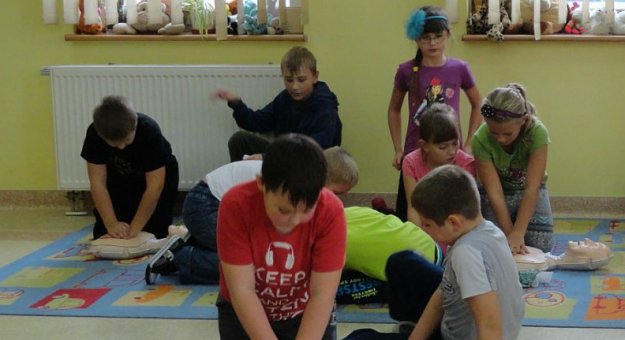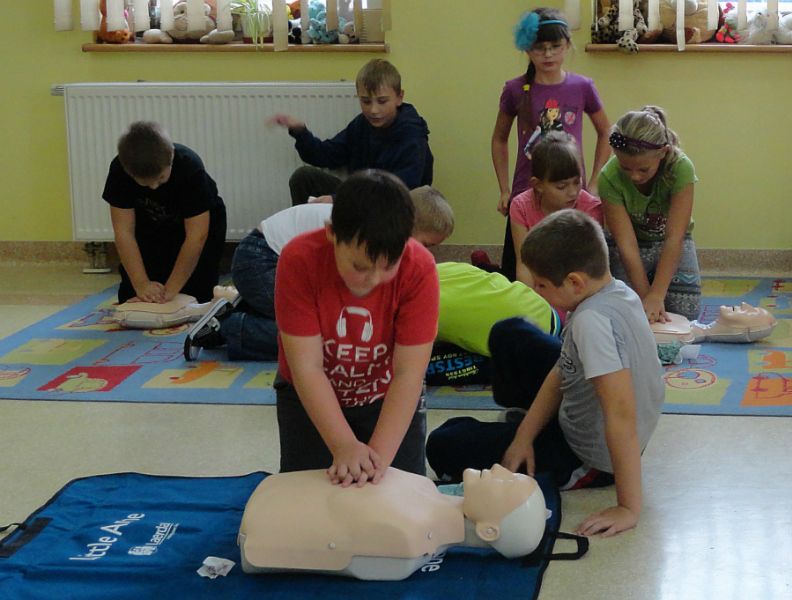 Uczniowie uczą się resuscytacji, czyli podstaw ratujących życie. Liczbę uciśnięć i wdechów uczą się na fantomach przekazanych przez Wielką Orkiestrę Świątecznej Pomocy. Polska jest pierwszym krajem na świecie, w którym na tak ogromną skalę wprowadzono naukę resuscytacji.