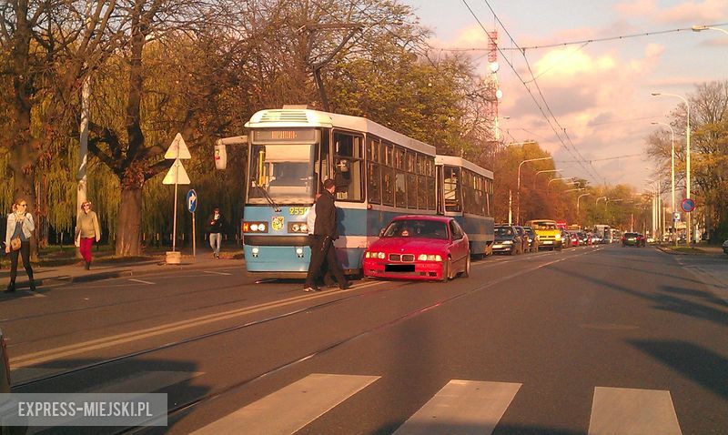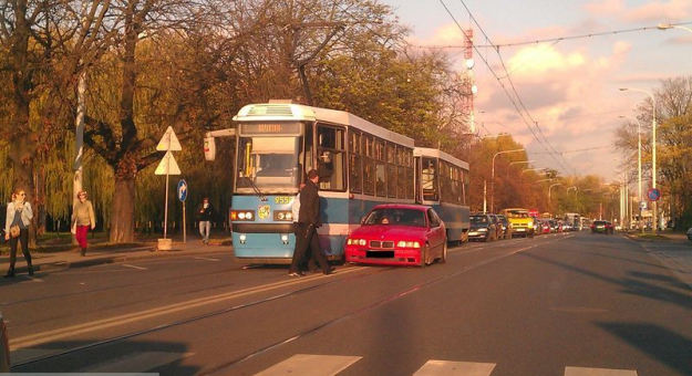 Kwadrans przed godz.17 na wysokości Hutmen'u na ul. Grabiszyńskiej doszło do stłuczki bmw z tramwajem.
