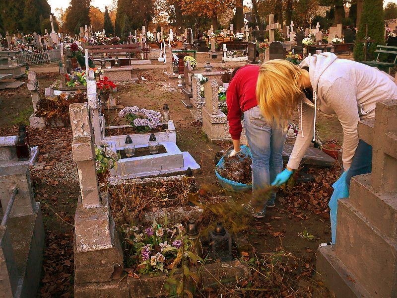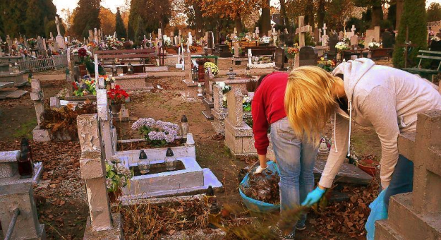 Przed Dniem Wszystkich Świętych uczniowie z gimnazjum porządkowali opuszczone groby na cmentarzu komunalnym.