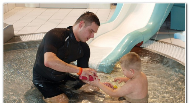Zajęcia indywidualnej nauki pływania rozpoczęły się na początku października. Chłopiec nigdy wcześniej nie był na żadnym basenie i po raz pierwszy w życiu znalazł się na tego typu obiekcie.