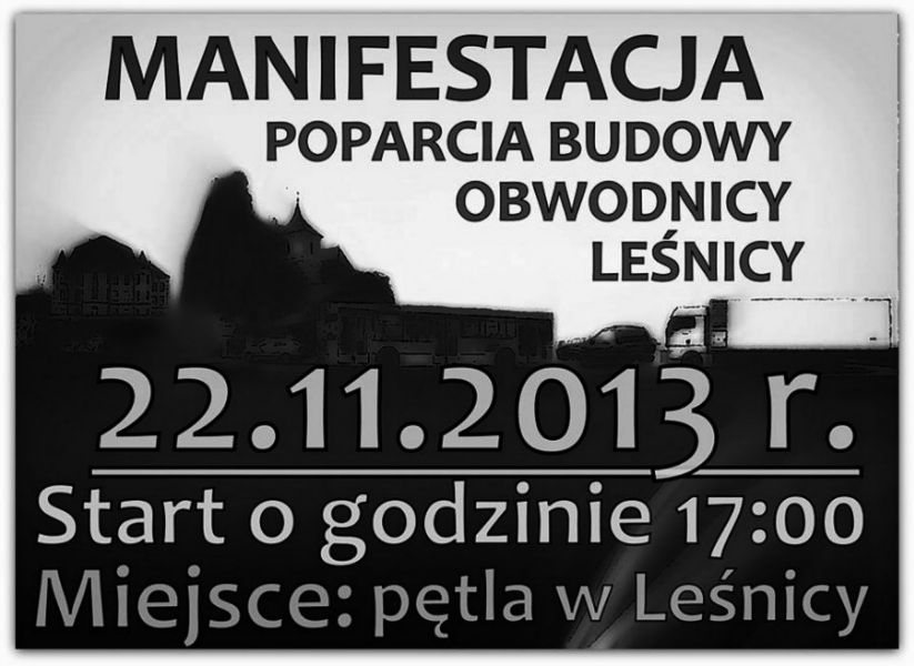 To protest przeciwko zwiększeniu tranzytu ciężarówek przez ulicę Średzką w Leśnicy. Niezadowolenie mieszkańców popiera rada osiedla, która jest współorganizatorem pikiety. Mieszkańcy chcą rozbicia tranzytu przez inne osiedla Wrocławia. Na Średzkiej przekroczone są też normy hałasu. W porze dnia 70,9 dB ( dopuszczalna norma 65 dB). W porze nocy 67,7 dB (dopuszczalna norma 56 dB). Zbiórka na pętli tramwajowej o godz. 17. Protest ma potrwać godzinę.