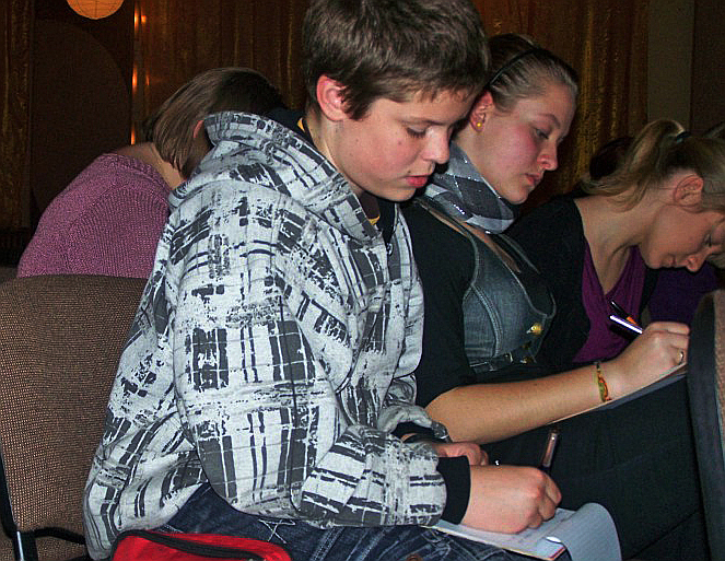 Podczas pisania nie wolno korzystać z żadnych pomocy naukowych, porozumiewać się z innymi uczestnikami oraz opuszczać sali przed zebraniem prac fot.: FG