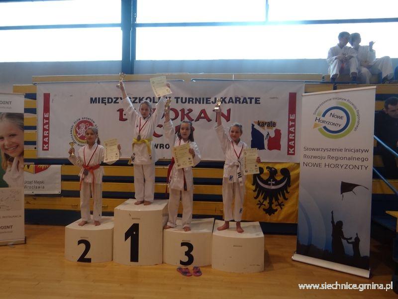 Rano rozpoczął się mniej prestiżowy turniej karate Budokan Cup. Radwanice w zawodach reprezentowali młodzi karatecy - Oskar Cieślak, Kacper Hucaluk i Małgorzata Biegańska, którzy trenują pod okiem Przemysława Biegańskiego. Kapitalny występ w zawodach jedynej dziewczyny w trzyosobowym zespole, która w swojej kategorii zarówno wiekowej, jak i wagowej nie pozostawiła rywalkom złudzeń i wywalczyła dwa złote medale. W konkurencji KATA mieszkanka Radwanic wywalczyła srebrny medal.