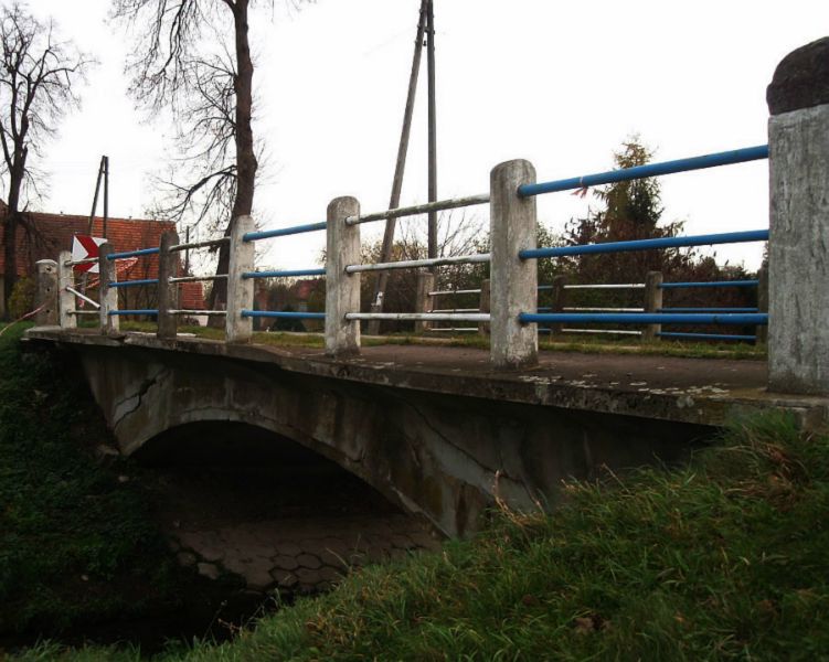Most był remontowany w latach 70. Wtedy szczeliny i pęknięcia uzupełniono cementem. Latem 2013 podczas żniw rolnik przewoził plony przez most. W trakcie transportu oderwała się przyczepa, która uderzyła w barierę. Od czasu kolizji do zimy wykruszyły się betonowe ubytki.