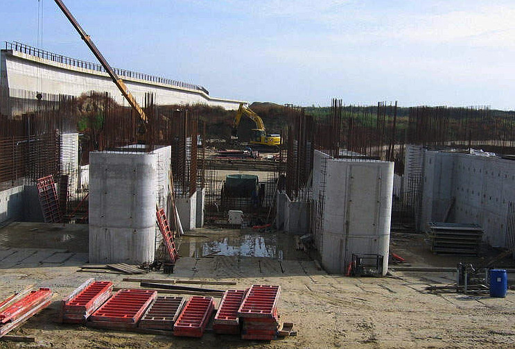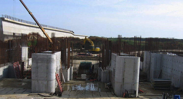 Strażacy pomogli poszkodowanemu mężczyźnie, który spadł z wysokości pięciu metrów z zapory w Rzeczycy. Ranny leżał w wodzie na głębokości ok. 30 centymetrów fot.: Hydrobudowa