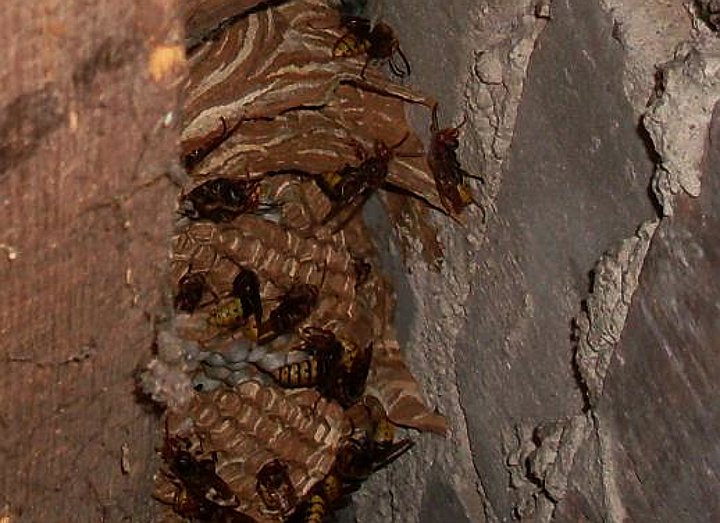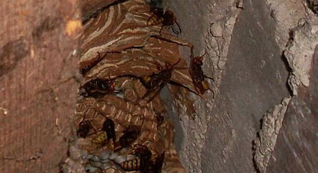 Gniazdo os pod sufitem budynku gospodarczego. Latem straż ma wiele wezwań do likwidowania kokonów fot.: bom