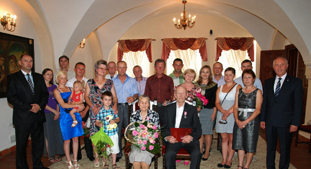 Diamentowe gody obchodzili Maria i Antoni Szczepaniakowie z Kobylnik. Medale za długoletnie pożycie wręczył jubilatom Mirosław Baraniecki, zastępca burmistrza Środy Śląskiej.